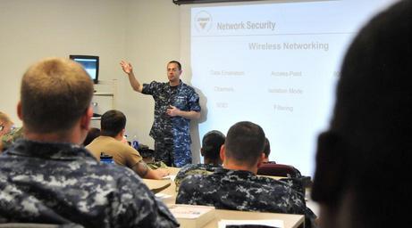 | Keywords: SPAWAR teaches ITs for Security Plus certification 130820-N-UN340-003.jpg en Chief Warrant Officer Daryn Bartlett assigned to Space and Naval Warfare Systems Command SPAWAR Reserve Unit 301 Everett Wash teaches a Security Plus certification class to Information Systems Technicians from 11 different San Diego area afloat and shore commands The students will test for Security Plus certification upon completion of the class and if successful will be immediately qualified to begin work on their command servers As the Navy's Information Dominance systems command SPAWAR sends fly-away network operations support teams to fleet units to provide tailored information technology and information assurance/security training required to maintain command control communications computers and intelligence C4I readiness U S Navy photo by Rick Naystatt/Released 2013-08-20 Rick Naystatt https //www dvidshub net/image/1000185 130820-N-UN340-003 2013-08-21 12 48 SAN DIEGO CA US PD-USGov-Military-Navy Space and Naval Warfare Systems Command Images from DoD uploaded by Fæ |