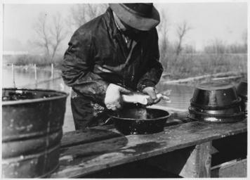 | Keywords: Spawning operations featuring wall eyed pike - NARA - 285740.jpg Scope and content Showing a catch sorting culling and milking the male fish General notes 285740 Local identifier Department of the Interior Bureau of Indian Affairs Red Lake Agency 1964 NARA's Central Plains Region Kansas City NREA 400 West Pershing Road Kansas City MO 64108 1939 Record group Record Group 75 Records of the Bureau of Indian Affairs 1793 - 1999 Record group ARC 404 Red Lake Agency Photographs compiled 1910 - 1965 Series ARC 285700 File unit File unit ARC Variant control numbers NAIL Control Number NRE-75-RL PHO -908 Other versions <gallery> File Spawning_operations_featuring_wall_eyed_pike_-_NARA_-_285740 tif tif File Spawning_operations_featuring_wall_eyed_pike_-_NARA_-_285740 jpg jpg </gallery> NARA-cooperation PD-USGov People with fish |