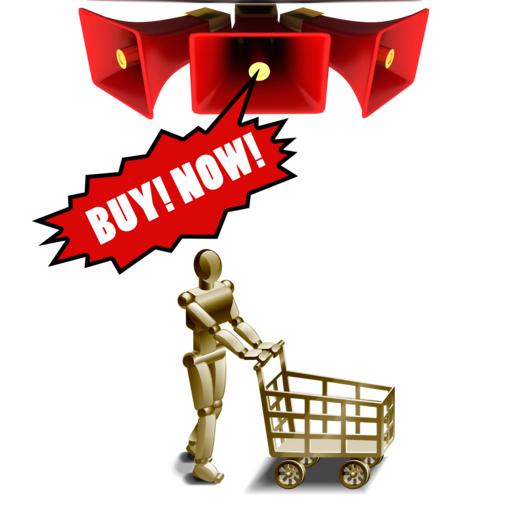 Keywords: speakers announcement obligation to buy prompt buy consumer aggressive shopping shopping cart balloon e commerce basket market robot buyer metal ai artificial intelligence android