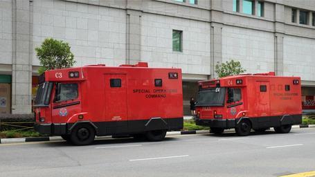 | Keywords: bugis bugis junction bugisjunction special operations command train vehicle outdoor The Police Tactical Vehicle (TAV) is an anti-riot bus that is designed to help the Police Tactical Troops to be more responsive and nimble when dealing with public security and public order threats. It is smaller, faster and better protected than the last generation of anti-riot buses (commonly known as "Ang Chia"). The Police Tactical Vehicle (TAV) is an anti-riot bus that is designed to help the Police Tactical Troops to be more responsive and nimble when dealing with public security and public order threats. It is smaller, faster and better protected than the last generation of anti-riot buses (commonly known as "Ang Chia"). |