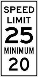 | Keywords: Speed Limit 25 Minimum 20 sign.svg 600 mm by 1200 mm 24 in by 48 in Combined Speed Limit sign made to the specifications of the http //mutcd fhwa dot gov/SHSm/regulatory pdf 2004 edition of Standard Highway Signs sign R2-4a Uses the http //www triskele com/fonts/index html Roadgeek 2005 fonts United States law does not permit the copyrighting of typeface designs and the fonts are meant to be copies of a U S Government-produced work anyway The outside border has a width of 1 1 mm and a color of black so it shows up; in reality signs have no outside border own Ltljltlj User Ltljltlj/Template minimum ImageNote 1 499 911 16 16 601 1201 2 2 ImageNoteEnd 1 R2-4 - Minimum Speed 2520 20 number 25 number |