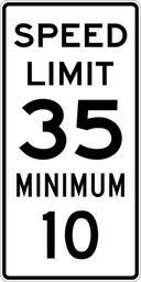 | Keywords: Speed Limit 35 Minimum 10 sign.svg 600 mm by 1200 mm 24 in by 48 in Combined Speed Limit sign made to the specifications of the http //mutcd fhwa dot gov/SHSm/regulatory pdf 2004 edition of Standard Highway Signs sign R2-4a Uses the http //www triskele com/fonts/index html Roadgeek 2005 fonts United States law does not permit the copyrighting of typeface designs and the fonts are meant to be copies of a U S Government-produced work anyway The outside border has a width of 1 1 mm and a color of black so it shows up; in reality signs have no outside border own Ltljltlj User Ltljltlj/Template minimum R2-4 - Minimum Speed 3510 Number 10 on speed limit road signs 35 number |