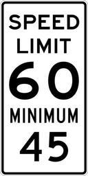 | Keywords: Speed Limit 60 Minimum 45 sign.svg 600 mm by 1200 mm 24 in by 48 in Combined Speed Limit sign made to the specifications of the http //mutcd fhwa dot gov/SHSm/regulatory pdf 2004 edition of Standard Highway Signs sign R2-4a Uses the http //www triskele com/fonts/index html Roadgeek 2005 fonts United States law does not permit the copyrighting of typeface designs and the fonts are meant to be copies of a U S Government-produced work anyway The outside border has a width of 1 1 mm and a color of black so it shows up; in reality signs have no outside border own Ltljltlj User Ltljltlj/Template minimum R2-4 - Minimum Speed 6045 60 number 45 number |