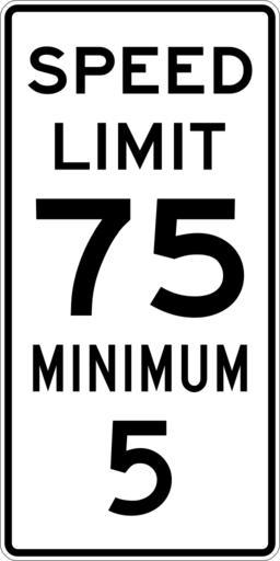 | Keywords: Speed Limit 75 Minimum 5 sign.svg 600 mm by 1200 mm 24 in by 48 in Combined Speed Limit sign made to the specifications of the http //mutcd fhwa dot gov/SHSm/regulatory pdf 2004 edition of Standard Highway Signs sign R2-4a Uses the http //www triskele com/fonts/index html Roadgeek 2005 fonts United States law does not permit the copyrighting of typeface designs and the fonts are meant to be copies of a U S Government-produced work anyway The outside border has a width of 1 1 mm and a color of black so it shows up; in reality signs have no outside border own Ltljltlj User Ltljltlj/Template minimum R2-4 - Minimum Speed 7505 5 number 75 number |