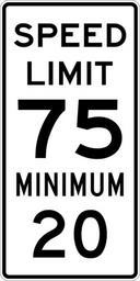 | Keywords: Speed Limit 75 Minimum 20 sign.svg 600 mm by 1200 mm 24 in by 48 in Combined Speed Limit sign made to the specifications of the http //mutcd fhwa dot gov/SHSm/regulatory pdf 2004 edition of Standard Highway Signs sign R2-4a Uses the http //www triskele com/fonts/index html Roadgeek 2005 fonts United States law does not permit the copyrighting of typeface designs and the fonts are meant to be copies of a U S Government-produced work anyway The outside border has a width of 1 1 mm and a color of black so it shows up; in reality signs have no outside border own Ltljltlj User Ltljltlj/Template minimum R2-4 - Minimum Speed 7520 75 number 20 number |