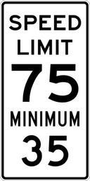 | Keywords: Speed Limit 75 Minimum 35 sign.svg 600 mm by 1200 mm 24 in by 48 in Combined Speed Limit sign made to the specifications of the http //mutcd fhwa dot gov/SHSm/regulatory pdf 2004 edition of Standard Highway Signs sign R2-4a Uses the http //www triskele com/fonts/index html Roadgeek 2005 fonts United States law does not permit the copyrighting of typeface designs and the fonts are meant to be copies of a U S Government-produced work anyway The outside border has a width of 1 1 mm and a color of black so it shows up; in reality signs have no outside border own Ltljltlj User Ltljltlj/Template minimum R2-4 - Minimum Speed 7535 75 number 35 number |