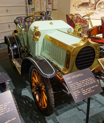 | Keywords: Speedwell roadster, 1903, made by Speedwell Motor Car Co., Manchester, England, 6 HP, 1 cylinder, gasoline engine - Luray Caverns Car and Carriage Museum - Luray, Virginia - DSC01201.jpg en Exhibit in the in the Luray Caverns Car and Carriage Museum Lurary Virginia USA 2015-07-11 11 26 38 own Daderot other versions cc-zero Automobiles in the Luray Caverns Car and Carriage Museum Speedwell UK vehicles | ||||