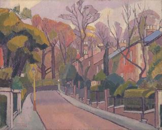 | Keywords: Spencer Frederick Gore - Cambrian Road, Richmond - Google Art Project.jpg No inscription Inscription _Signed_and_Dated Signed stamped in violet paint lower left S F GORE Bay N04 201 Oil on canvas autumn sky bushes wall gate windows city houses sidewalk trees dwellings street lamppost road cityscape landscape special url_id 8QFpg1CtRAff-Q PD-old-100-1923 1914 Google Art Project works by Spencer Gore Spencer Gore | ||||