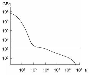 | Keywords: Spent nuclear fuel decay.png This diagram demonstrates the decay of radioactivity in high level wastes from one tonne of spent PWR fuel The vertical axis shows activity of the wastes horizontal years after removal from interim storage activity in reactor is still much higher The horizontal line in the middle represents the activity of the original uranium ore Tungsten The source of the data is Radioactive Waste Management in Perspective published by OECD's Nuclear Energy Agency in 1996 http //www nea fr/html/general/press/1996/1996-7 html Similar data is also available at the website of the Australian Nuclear Science and Technology Organisation http //www ansto gov au/edu/nuclear_age/nuclear_age_atom htm Nuclear power schemas and diagrams Nuclear waste Radioactivity |