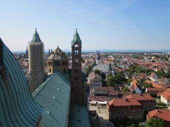 Keywords: speyer cathedral exterior architecture church europe germany religious building view historic famous spires steeples unesco