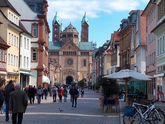 Keywords: speyer germany city buildings avenue walkway people sky clouds skyline architecture cities urban shopping outside