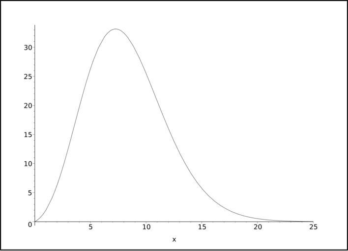 Keywords: Sphere area in n dimensions.svg en A graph of the surface area of a unit sphere in x dimensions as a function of a x Own Quantling 2009-01-13 Area Spheres