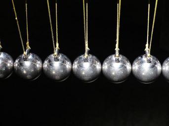 | Keywords: spherical ball joint pendulum balls metal silver play toys spherical ball newton pendulum newton cradle suspended pendant series click clack edme mariotte physics experiment pulse momentum conservation conservation of momentum elastic joints kinetic energy shock |