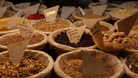 Keywords: spices market food ingredient stall nutmeg cooking cuisine salad coriander juniper berry france french seasoning herb dry seed