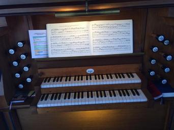 | Keywords: Spieltisch Orgel Gieboldehausen.JPG de Der Spieltisch der Krell-Orgel mit Registerzügen an der linken und rechten Seite Selbstgemachtes Foto Yannick Bode 2014-04-17 Cc-zero Gustav-Adolf-Kirche Gieboldehausen Pipe organs in Landkreis Göttingen |