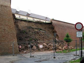 Keywords: Špilberk, collapsed wall (2).jpeg cs Zřícená část hradeb hradu Špilberk v Brně en Collapsed portion of the walls of Špilberk Castle Brno Czech Republic own DaBler 2010-06-16 49 11 41 933 N 16 35 53 114 E Špilberk Castle