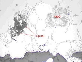 | Keywords: Spinel and MgO inclusions.jpg en Example of spinel and magnesium oxide inclusion in liquid aluminium observed an optical microscope at high magnification from a PoDFA sample own Jasmin Proulx 2010-05-19 Metallographic micrographs Metallography Microscopic images |
