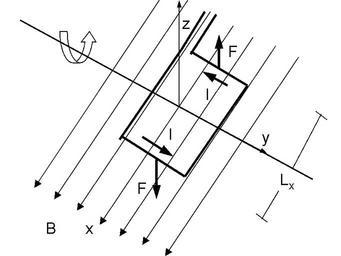 Keywords: Spiracampo.png ConvertToSVG Scheme of a coil rotating in a magnetic field Own Pasquale Carelli Magnetism diagrams