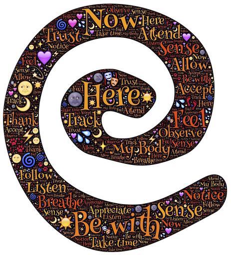 | Keywords: spiral sacred symbol present presence being sense notice breathe feel listen appreciate accept follow track trust observe body mind spirit moment soul consciousness connect now peace joy accepting love appreciation change harmony growth feelings healing meditation mindfulness |
