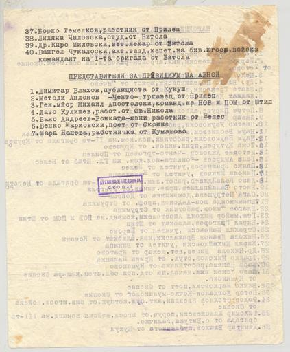 | Keywords: Spisok na delegati vo avnoj 2.jpg mk Список на делегати исп атени од АС О во АВ ОЈ вто а ст аница en The list of names of delegates for AVNOJ from Macedonia second page DARM archive 1944-08-02 The State Archives of the Republic of Macedonia DARM anonymous other versions cc-zero Wikipedian in Residence at DARM ASNOM AVNOJ Uploaded with UploadWizard |