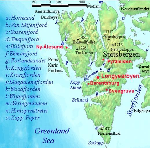 | Keywords: Spitsbergen settlements mountains and marine features labelled.png en Map detailing the marine features of Spitsbergen in the Svalbard archipelago Settlements and mountains are indicated and labelled See also Image Spitsbergen mountains and marine features labelled png Locations were labelled based on detailed maps from http //www svalbard-images com/spitzberg/spitzberg-sud php svalbard-images com sample of south Spitsbergen linked cross-referenced with other map sources http //miljo npolar no/placenames/pages/detaile asp placeNameID 615073M Norwegian Polar Institute figures were used for mountain names and heights which are given in meters above sea level 2006-07-24 own assumed TheGrappler http //www demis nl/home/pages/wms/demiswms htm DEMIS World Map Server generated this map from Public Domain sources DEMIS does not claim any rights over the resultant image http //www2 demis nl/mapserver/DataSrc htm Alterations including the addition of settlements and captions were performed on 24 July 2006 by User TheGrappler the uploader who releases all associated rights PD-Demis Maps of Svalbard Spitsbergen |