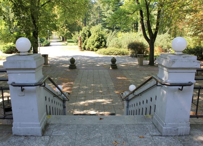 Keywords: Společenský dům, Darkov - schodiště.JPG cs Pohled ze schodiště Společenského domu na Lázeňský park Karviná-Darkov own Hellooo 2013-08-02 Společenský dům Darkov Lázeňský park Karviná