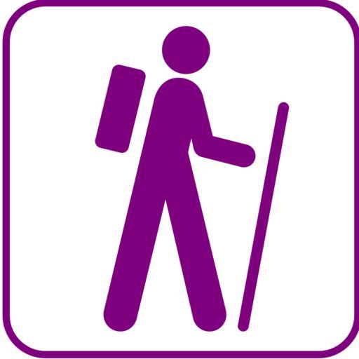 Keywords: sport hiking wanderer stick backpack sign pictogram frame walking purple
