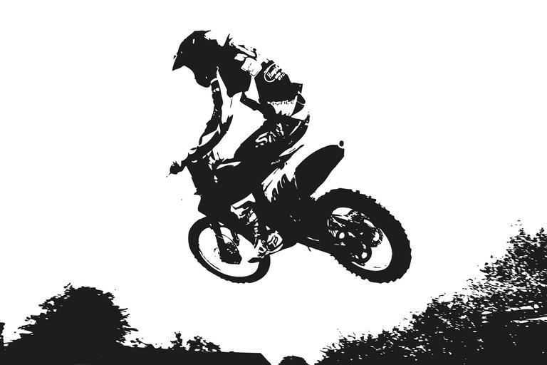 Keywords: sport jump cross motocross mural motorcycle motorsport enduro racing risk extremely black and white action motocross ride terrain motorcyclist man athletes person motors race speed