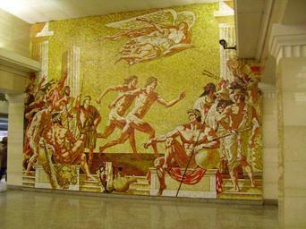 Keywords: Sportivnaya metro image.JPG Станция Пете бу гского мет ополитена - Спо тивная Own 2008 Sasha Krotov Tiles on the Sportivnaya metrostation Lower hall of Sportivnaya metrostation Running in art Mosaics in Saint Petersburg Metro