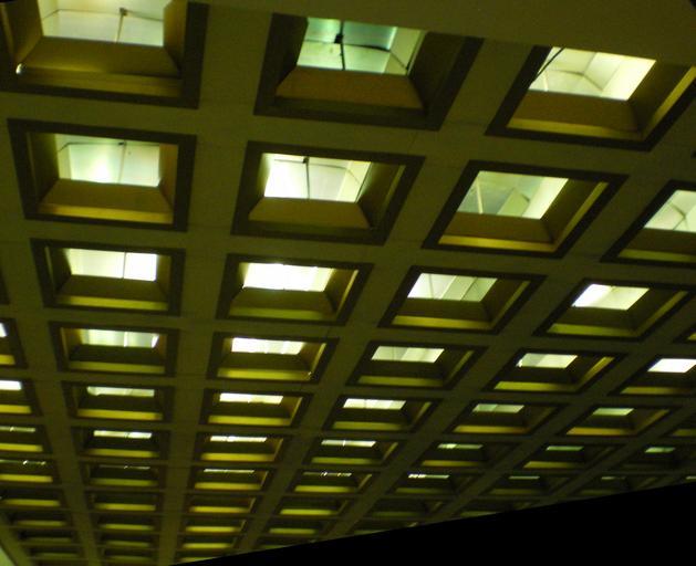 Keywords: Sportivnaya metrostation Hall ceiling.jpg аземный вестибюль станции «Спо тивная» потолок own 2007-09-06 Анд ей Coffered ceilings Saint Petersburg Sportivnaya metrostation