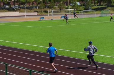 Keywords: sports fitness running stadium man men male lawn