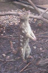 Keywords: Spotted-tail Quoll standing-on-hind-legs.jpg en Spotted-tailed Quoll own Figaro 2010-11-04 Photo taken at Queens Park Ipswich Queensland Australia Dasyurus maculatus Queen's Park Ipswich