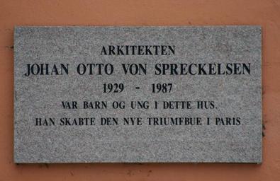 | Keywords: Spreckelsen.JPG en Memorial tablet for the architect Johan Otto von Spreckelsen at his place of birth in Viborg Denmark Mindetavle for arkitekten Johan Otto von Spreckelsen på hans barndomshjem i Sct Mogens Gade i Viborg own Calvin 2010-01-22 Monuments and memorials in Viborg |
