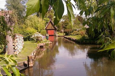 Keywords: spreewald river boat house scale nature idyll rest chill out silent