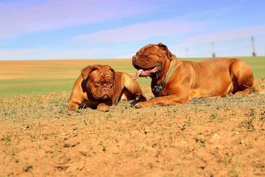 Keywords: spring animal beast on the hunt mammal dog french mastiff dogue de bordeaux on the prowl romantic romance outdoor horizon nature landscape beauty field summer