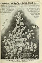 | Keywords: Spring catalog of Alexander's seeds (16249774010).jpg ALEXANDER'S GOOD i EED AUGUSTA GA <br> 33 <br> Alexander's 90-Day the QUICK CROP Cotton <br> in it are combined the most V u r profit from a late » Ptantg cio fol- <br> l0W t; g the VrtherncottSn growfng S5StoS Xr U SU sections of Texas Louisiana and Mississippi <br> tT1 P c S am ambition to offer a variety of cotton that would make a big profitable crop in the short- <br> eltfimt Teft studted M blen for years carefully testing experimenting patiently selecting plant- <br> ing and waiting for results _ p1en THESE TWO most desirable qualities <br> NOW alter years of the most se en combined in this new selection <br> tific selection we have at last succeeded QUICKEST CROP and a BIG <br> by combining in Oils cotton among ropT» We think 90-DAY the <br> its many good qualities two of the 4 1 ielit name for it because its <br> most valuable and so much desired JBl'AdMk- EXTRA EARLINESS is its <br> by every up-to-date Pinter who ™¦ m desirable quality for many <br> wants to get the quickest ana / ¢Â« TMp nlanters <br> most profitable returns trom <br> his soil <br> ALEXANDER'S <br> 90- Day Cotton Beats <br> the Boll Weevi' <br> PRICE POSTPAID <br> Pound 50c; 3 Pounds 1 00 <br> Express or Freight Peck <br> 90c; Bu 3 00; 10 <br> Bu 27 00 <br> Not Prepaid <br> 100 Lbs 9 00 <br> Can be Planted Later and Picked Earlier Than Any Other Cotton <br> THE EARLIEST COTTON IN THE WORLD 43935796 150287 78741 Page 33 Text http //www biodiversitylibrary org/page/43935796 1917 10 5962/bhl title 78741 Alexander Seed Co ; Henry G Gilbert Nursery and Seed Trade Catalog Collection Biodiversity Heritage Library Spring catalog of Alexander's seeds Garden Stories Agriculture Catalogs Cottonseed Flowers Seeds U S Department of Agriculture National Agricultural Library bhl page 43935796 dc identifier http //biodiversitylibrary org/page/43935796 Alexander's new extra early cotton bhlGardenStories BHLinbloom u s department of agriculture national agricultural library bhlgardenstories bhlinbloom Information field Flickr posted date ISOdate 2015-02-03 CC-BY-2 0 BioDivLibrary https //flickr com/photos/61021753 N02/16249774010 2015-08-24 05 51 05 cc-by-2 0 PD-old-70-1923 Spring catalog of Alexander's seeds Photos uploaded from Flickr by Fæ using a script |