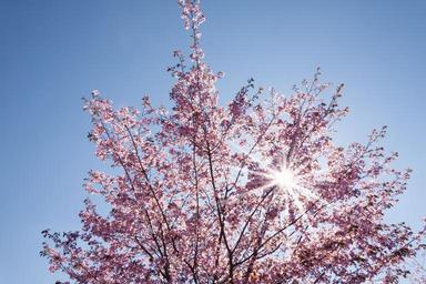 Keywords: spring cherry blossom japanese cherry trees sun blossom bloom sky bloom awakening pink blue sprout smell garden flora plant spring awakening reflexes sunbeam shine through