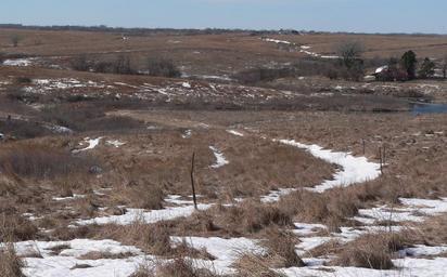 | Keywords: Spring Creek Prairie wagon ruts from E 2.JPG en Snow-filled wagon ruts descending a slope to the west of Spring Creek at the Spring Creek Prairie Audubon Center; seen from the east The small pond at the right edge of the photo is on Spring Creek A deep set of ruts is marked by vertical poles; it arcs rightward through the foreground down the hill and then leftward again near the hill's base A second less deep set of ruts can be seen to the left of and parallel to the first ruts 2012-02-21 own Ammodramus cc-zero Uploaded with UploadWizard Pictures by Ammodramus Taken with Panasonic Lumix DMC-FZ20 Spring Creek Prairie wagon ruts Lancaster County Nebraska |