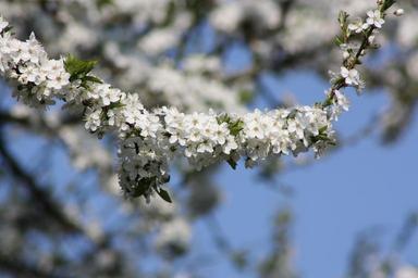 Keywords: spring denmark flowers apple branch blue white sky broken clouds diversity many close