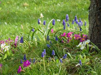 Keywords: spring flower meadow farmer boy primroses grape hyacinth beautiful colorful nature flowers early bloomer spring awakening spring flower pretty field of flowers plant
