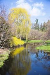 Keywords: spring forsythia creek reflection yellow foliage petal blossom bloom