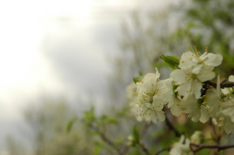 Keywords: spring green bloom flowers flourishing white apple nature closeup