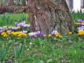 Keywords: spring in the garden crocus birch trunk birch petite and powerful yellow spring crocus flowers garden flowers purple plant meadow early bloomer time of year colorful signs of spring