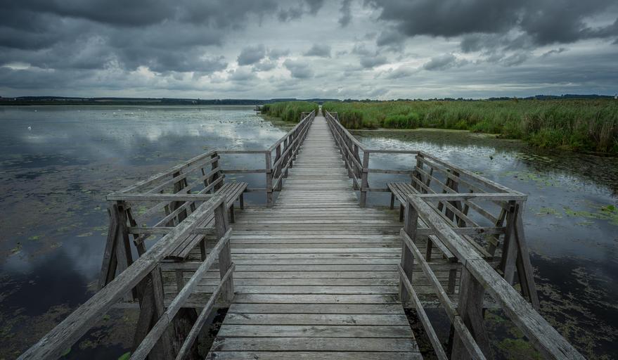 Keywords: spring lake wooden bridge boardwalk baden württemberg nature reserve away web railing nature southern germany grasses landscape nature conservation wetland clouds