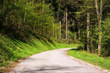 Keywords: spring road away forest nature trail nature trees asphalt