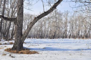 Keywords: spring snow trees puddles forest landscape