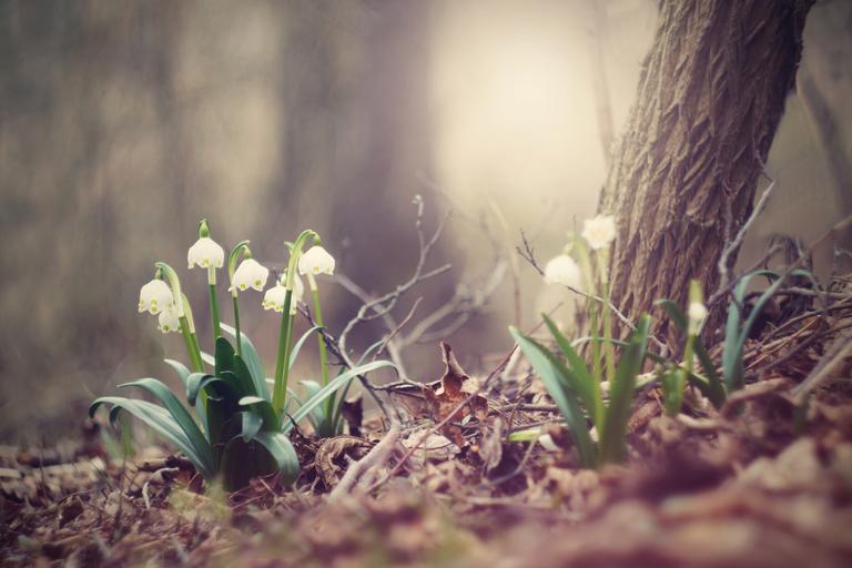 Keywords: spring snowflake spring forest floodplain forest nature trees light sun flowers flowering spring landscape fallen leaves leaves