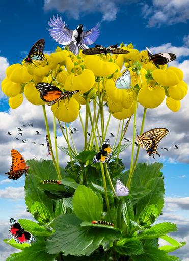 Keywords: spring spring meadow flower integrifolia yellow bloom butterfly caterpillar butterfly caterpillar bird tit goose migratory bird image overlay eat nectar fly