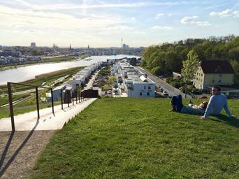 Keywords: spring walk landscape nature green tree away sky in the free sunny hiking walkers idyllic dortmund phoenix lake