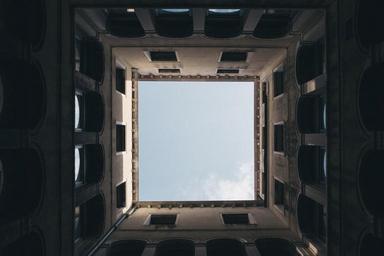 Keywords: square courtyard patio walls building architecture construction house view sky geometric
